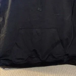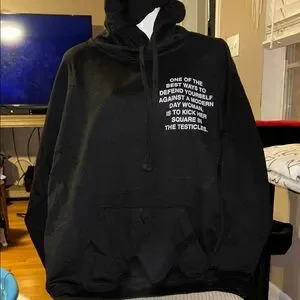 Stylish black hoodie with a bold graphic text on the front. Perfect for casual wear.