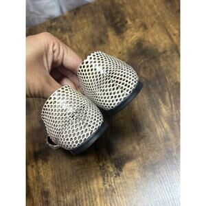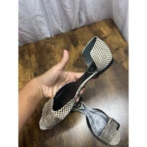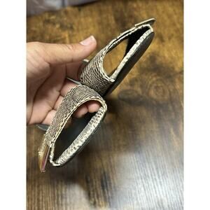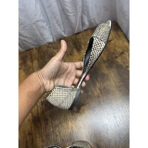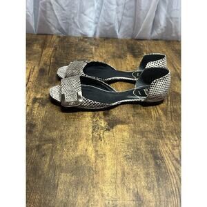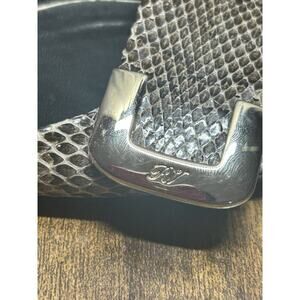 Roger Vivier Paris Snakeskin Print Open Toe Flats Gold Buckle Shoes Sz 35.5 or 5.5 us womens