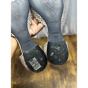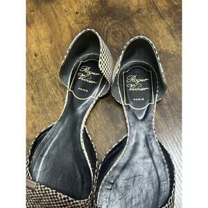 Roger Vivier Paris Snakeskin Print Open Toe Flats Gold Buckle Shoes Sz 35.5