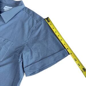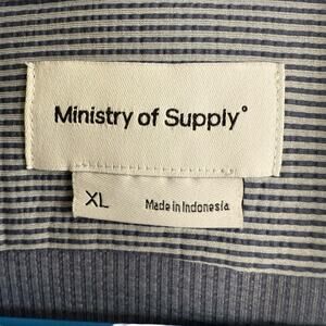 The Ministry of Supply Hybrid Seersucker short sleeves shirt in XL is a preppy and stylish option for men interested in a coastal look. With its striped pattern, collared neckline, and button closure, this shirt is perfect for casual occasions, parties, or travel. Made with a lightweight and breathable material, this shirt is easy to care for and suitable for wearing during the summer, fall, or spring seasons. The blue color and button accents add a touch of sophistication to this regular fit shirt, making it a versatile and fashionable choice for men's everyday wear.