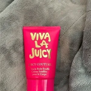 Indulge in the luxurious Juicy Couture Viva La Juicy Body Soufflé. This pink body cream offers a rich, moisturizing experience with a delightful fragrance.