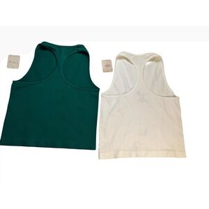 Free People Seamless Cropped Ribbed Tank Top 2-Pack Green & White New