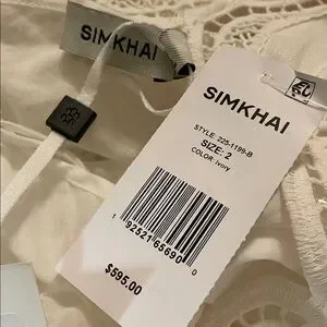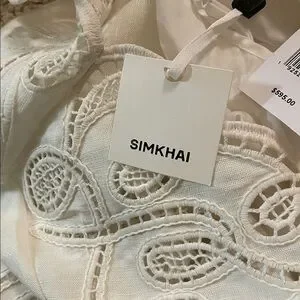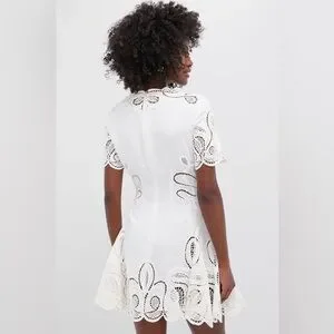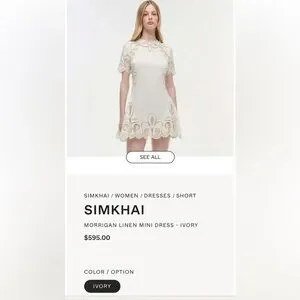 SIMKHAI Ivory Morrigan Short Sleeve Mini Dress. Models is wearing size 2.