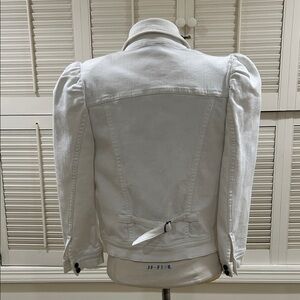Elevate your style with this chic white denim jacket featuring elegant puff shoulders. Perfect for layering, this jacket adds a touch of sophistication to any outfit.