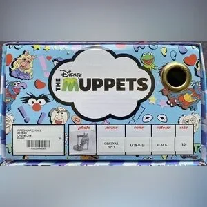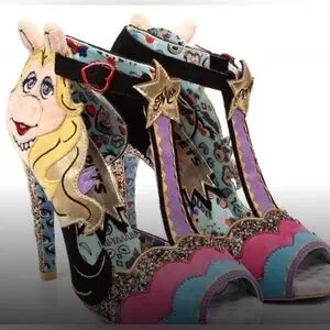 RARE Retired WEARABLE COLLECTIBLE Limited Edition Irregular Choice 2017 production Miss Piggy Muppet Statement Stiletto Heels, “Diva” features a glittering high heel, colorful design glitter accents. It includes various details inspired by Miss Piggy, such as her image on the heel or toe, and embroidered text like “Kermieee!". This pair was worn once and stored in its originally packaging and box within a box in a climate controlled environment. The shoe is in very close to like new condition with just a little wear on the soles from the one time outing and is a tiny bit dusty from having been in storage since 2017.