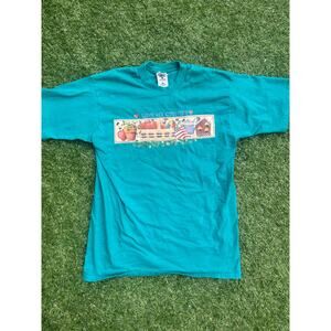 Vintage 90s Teal Graphic T-Shirt "Love My Country" USA Garden