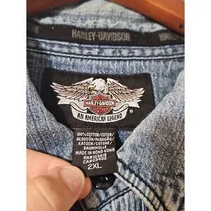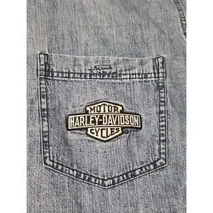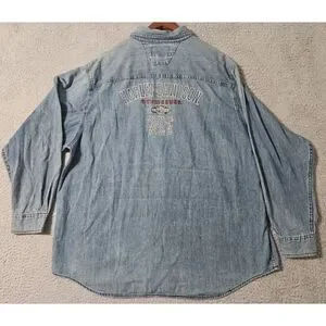 Vintage Harley Davidson Embroidered Blue Denim Button Down Shirt Men's Size 2XL