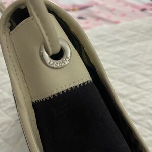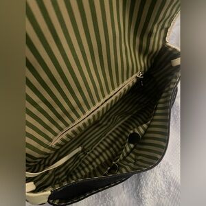 Stylish and versatile, this Lacoste women's bag features a sleek design. Perfect for everyday use, it combines fashion with functionality. Very pretty bright green striped interior. So iconic! The bag vintage and is in good condition.