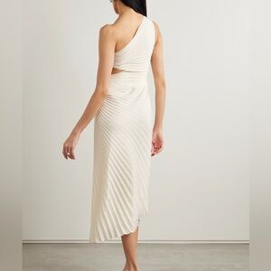 A.L.C Dahlia dress, one shoulder midi, ivory pleated dress, asymmetric white dress, cut out midi, cocktail dress, wedding guest dress, designer dress