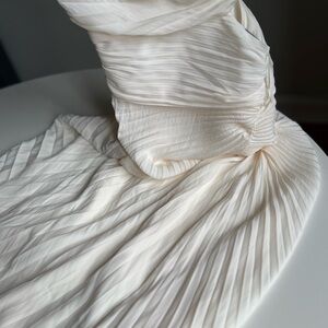 New A.L.C Dahlia Size 0 Pleated Asymmetric Midi Dress Cream Ivory One-Shoulder