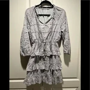 T by Talia Tier Floral bohemian Eyelet Cottage Core Mini Dress