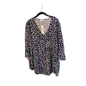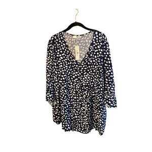 Agnes Orinda NWT plus size V-neck 3/4 flounce sleeve baby doll Blouse S/2X