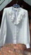 Ladies J Crew chic, off-white, clip-dot blouse with elegant ruffles. Perfect for versatile styling.