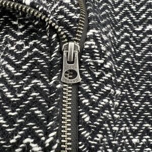 Lucky Brand Sz L Moto Sweater Jacket Zip Up Pocket Black White.