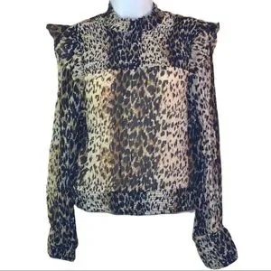 Free People | Brown Leopard Print Roma Blouse Cropped Sheer Crinkle S