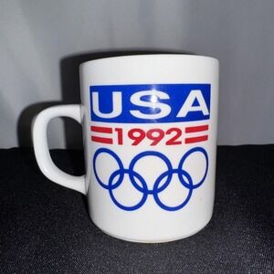 1992 Barcelona USA Olympic Logo Coffee Mug Ceramic Collectors Item White Vintage