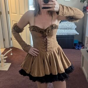 Missing ears. Includes arm and leg warmers.Does not include black petticoat. Size M/L but runs short. 5'8'' 140lb in picture for sizing