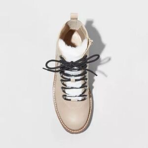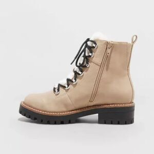 These hiking boots are the perfect mix of rugged and casual style. Boasting a memory foam footbed and soft lining, these medium-width boots will keep you comfortable all day. They're designed with a lace-up tie front and a side zipper for an adjustable, secure fit, along with a back tab that allows easy pulling on and off. The round-toe boots have a faux-leather upper with a five-inch shaft height and are set on a 1.75-inch block heel. They also have a lightweight, flocked rubber-like outsole for added comfort. Plus, silver-tone metal hardware on the front, a cozy faux-fur tongue, and stitching accents elevate the look even more, whether you wear them for a walk around your neighborhood, a hangout with friends or trekking.