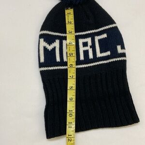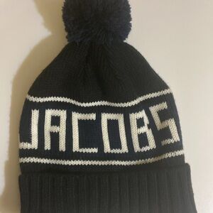 MarcJacob Winter Knit Hat.Color-black ,dark blue and cream.Length-12 inches Circumference- 16 inches.Pompom on top.Stretch to fit