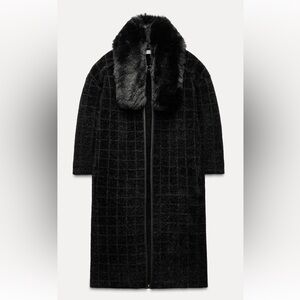 ZARA KNIT COAT WITH FAUX FUR COLLAR