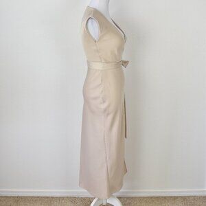 BHLDN Louisa Satin Charmeuse Champagne Cream Midi Dress - 0