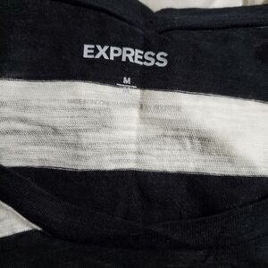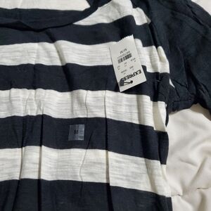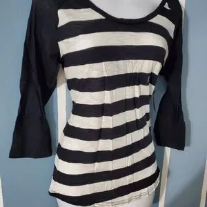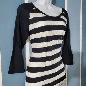 3/4 sleeve top with bold black and white stripes. Ideal for casual wear.