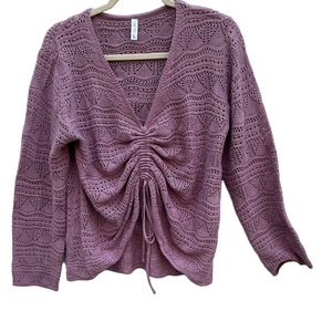 Stay cozy and stylish with this elegant purple knit sweater. Perfect for any occasion.