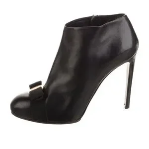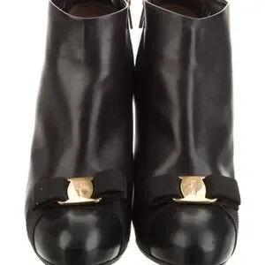Ferragamo Elegant Black Ankle Boots with Gold Accent