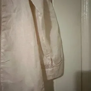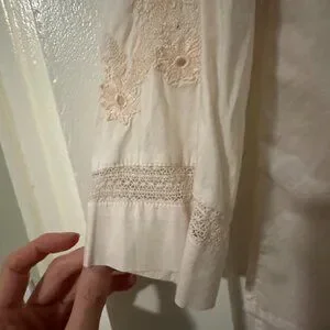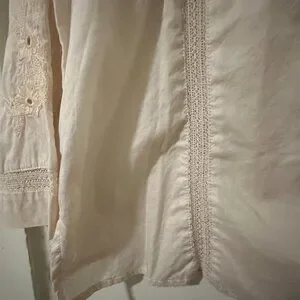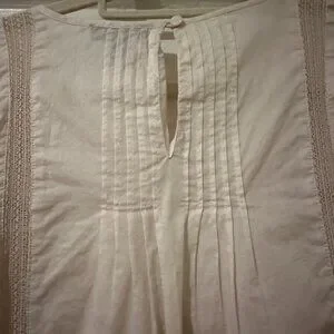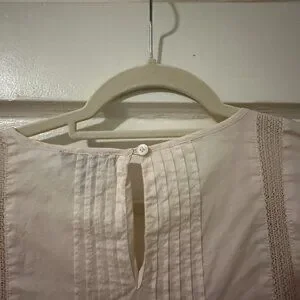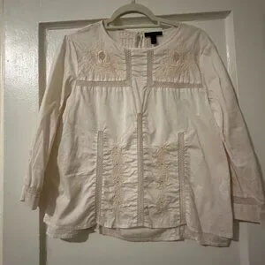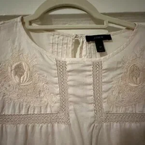 Beautifully detailed J.Crew top featuring delicate embroidery and soft pleats for a timeless, feminine look. The neutral cream shade pairs perfectly with jeans, skirts, or trousers for a versatile style that transitions effortlessly from work to weekend.
