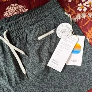 Experience ultimate comfort and style with Vuori's green athletic shorts, featuring a modern dolphin hem and lightweight fabric perfect for workouts or casual wear.