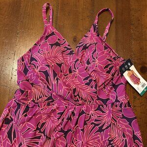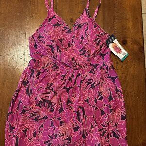 Lands' End Women's UPF 50 Removable Cups Swim Dress, Pink Purple Size XL NWT