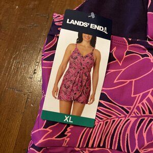 Lands' End Women's UPF 50 Removable Cups Swim Dress, Pink Purple Size XL NWT. Condition is New with tags. Shipped with USPS Ground Advantage.