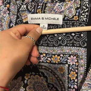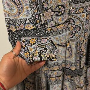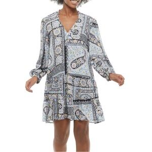 Emma & Michele Long Sleeve Paisley Dress - Black, Blue, Cream