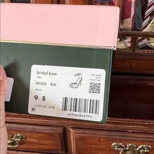 Brand new in the box. Size 9, Kate spade women’s black satin bridal bow strappy heel. Comes in the original box with the dust bag.