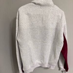 Cozy zip-up sweater with bold red accents. Features White Fox branding. Perfect for casual wear.