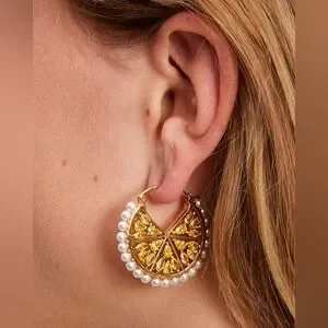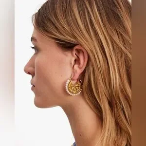 These stunning gold hoop earrings are adorned with delicate pearls, offering a touch of elegance to any outfit. Perfect for any occasion.