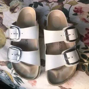 White Big Buckle Birks in almost new condition as shown. From my closet to your vacation!