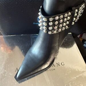Step out in style with these elegant black over the knee boots. Adorned with striking studs, they add a bold touch to any ensemble. Perfect for both day and night occasions., gorgeous boots, never worn , original box and dust bags