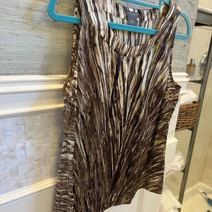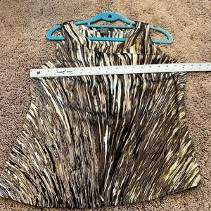 Ann Taylor mp brown white green sleeveless silk top high neck medium petite