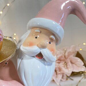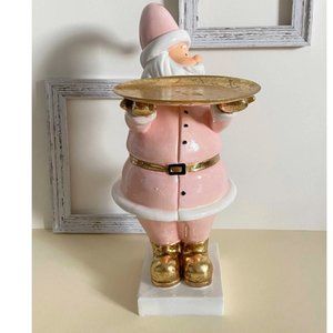 Christmas Holiday Pink Gold Santa Holding Serving Tray Display Stand NEW
