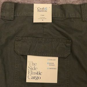 Croft & Barrow side elastic cargo shorts size 46. Olive green color. New with tags. Men’s size 46. Thank you for visiting my closet and Happy Poshing!!!