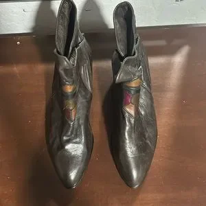 Tags - vintage leather boots, retro ankle boots, 80s style boots, slouchy ankle boots, soft leather booties, minimalist chic, boho western boots, indie fashion, artsy footwear, unique leather shoes, black ankle booties, handmade look, festival boots, street style boots, classic leather ankle boots, timeless vintage, soft supple leather, geometric detail boots, urban chic, fall fashion, winter staple, comfy ankle boots, everyday wear boots, stylish flats alternative leather 80’s 90’s retro vintage booties witch witchy cottagecore witchy vintage wagon train prairie Lagenlook conservative mature cottagecore office casual streetwear granny core