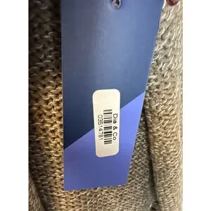 This is a new-with-tags MERI SKYE women's V-neck sweater in size 5X, featuring a beige and white knit pattern. The sweater has long sleeves and a relaxed fit. A distinctive detail is the lace-up design with bronze-toned grommets along the side seams near the hem. The knit appears to be a loose, open weave, and the bottom hem and cuffs have a ribbed finish. A product tag from "Dia & Co" is also visible.