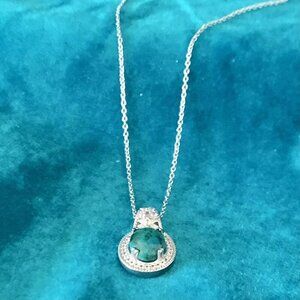 Sterling silver necklace with green stone pendant - the pendant is most likely malachite but we don’t know for sure. This is a dainty necklace and goes with just about any outfit.