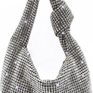 Women Knotted Handbag Sparkly Rhinestone Hobo Dumpling Bag Diamond Glitter Eveni