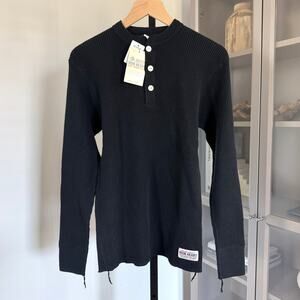 Iron Heart Waffle Knit Black Henley Long Sleeve Shirt M NEW Button Slim Pullover