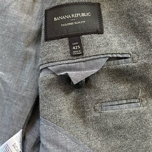 EUC. Refined charcoal blazer with a modern fit. Features a notched lapel and three-button closure. Ideal for versatile styling.