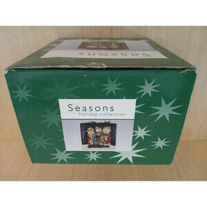 Seasons Holiday Collection Glass Light Up Christmas Present Block with Snowmen