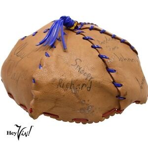 * Special Feature: Vintage Child Size Leather Beanie Cap with Autographs has a top tassel.