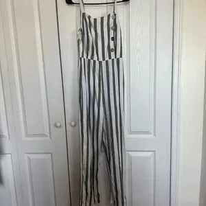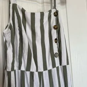 C&C California Olive and White Striped Jumpsuit